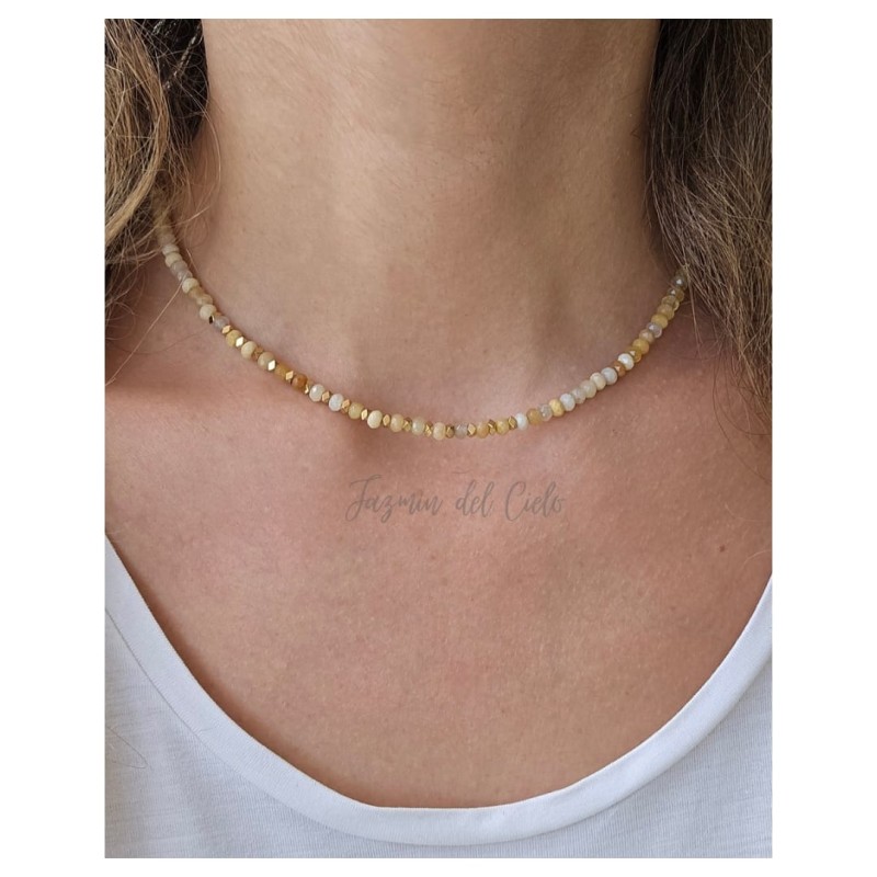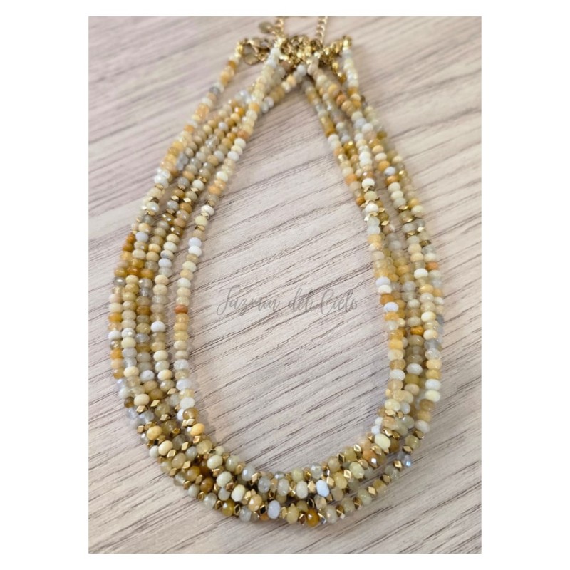 Collar de piedras naturales de Jade amarillo con separadores en Hematitas doradas.
