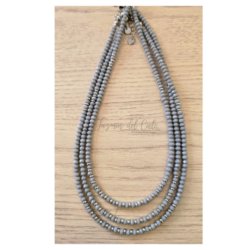 Collar de piedras naturales de Agata gris con separadores en Hematitas doradas.