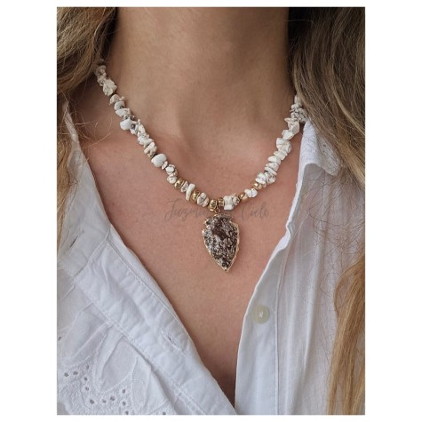 Largor total del collar: 38 cm. + 5 cm. de alargue en cadena de acero inoxidable.