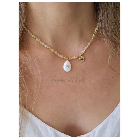 Largor total del collar: 41 cm. + 5 cm. de alargue en cadena de acero inoxidable