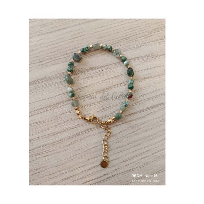 Pulsera en piedras naturales de agatas y piedras naturales facetadas en tonos verdes matizados