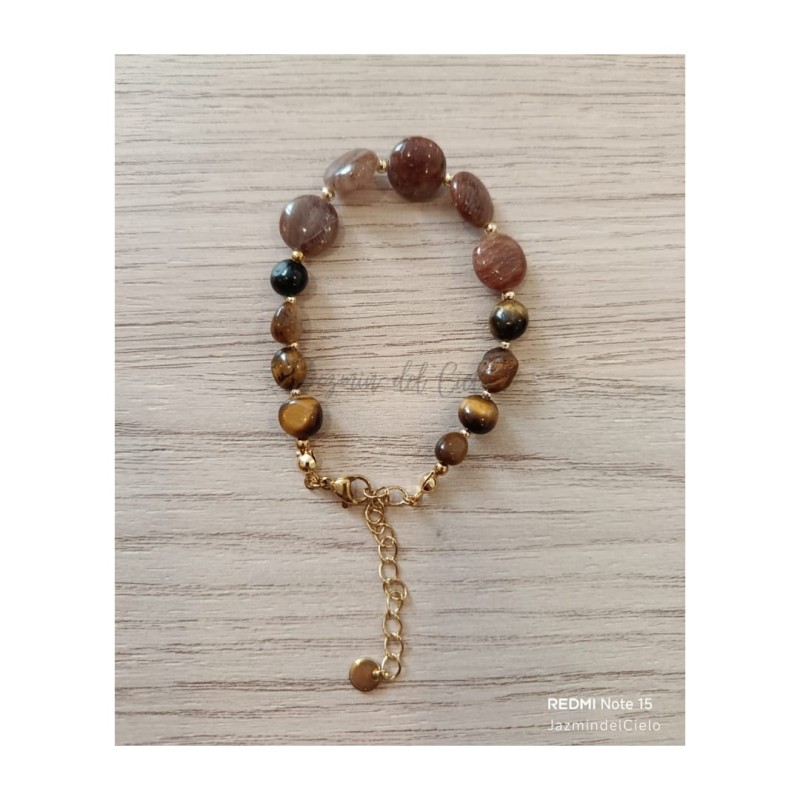 Pulsera en piedras naturales de Jaspe y ojo de tigre con separadores dorados en Goldfield.