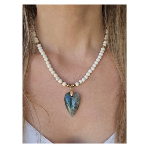 Collar elegante que presenta una delicada cadena de pelotitas enchapada en Goldfield ,que aporta un toque moderno y brillante. El colgante está compuesto por un hermoso dije en forma de hongo en Goldfield con circones de colores y junto a él, un corazón radiante de acero inoxidable.