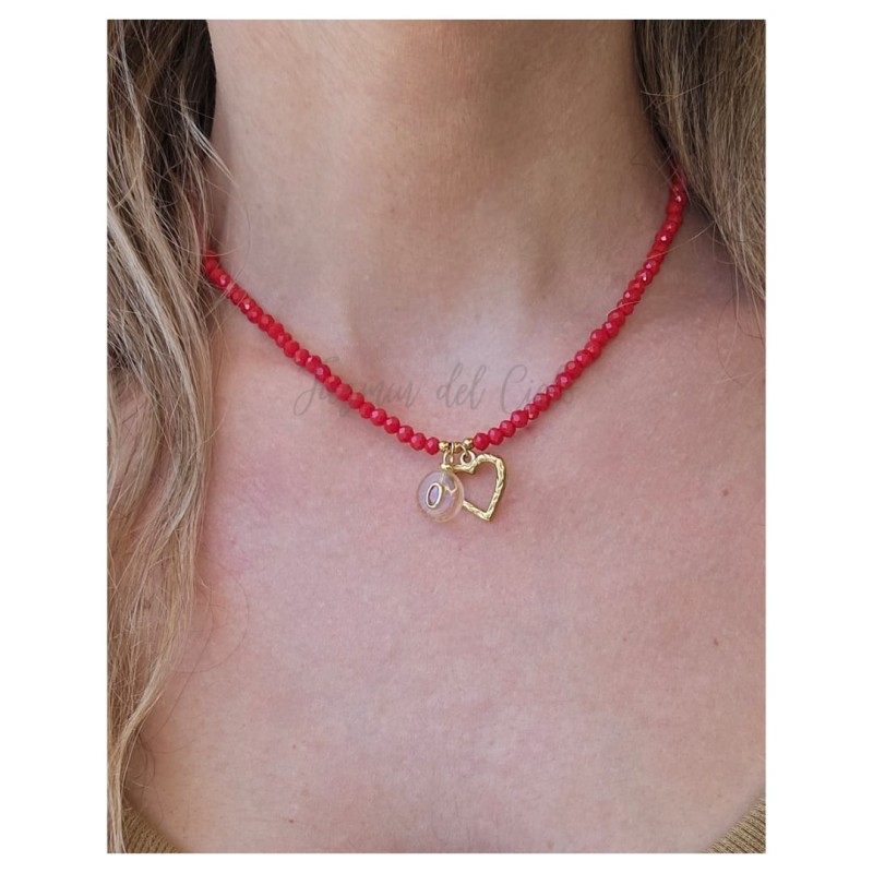 Collar en cristales facetadas con separadores en acero inoxidable y doble dije.