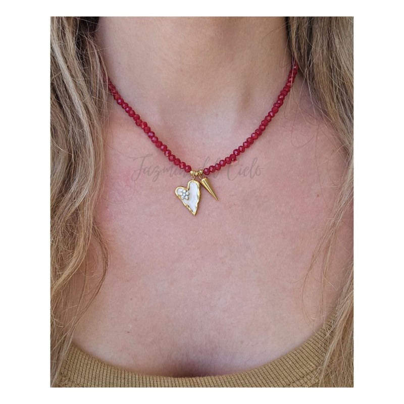 Collar en cristales facetadas con separadores en acero inoxidable y doble dije.