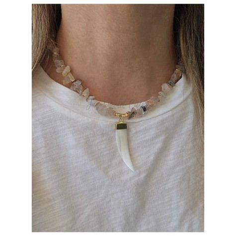 Largor total del collar: 52 cm. + 5 cm. de alargue en cadena de acero inoxidable.