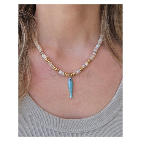 Largor del collar: 48 cm. + Pendiente de collar (4 piedras) 11 cm. + 5 cm. de alargue en cadena de acero inoxidable.