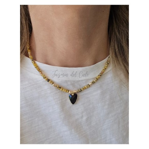 Collar de cuentas de nácar matizado que se agrupan en tonos cálidos de tierra, creando una armonía sutil entre el blanco, beige y marrón. Las cuentas están intercaladas con separadores goldfield. Ideal para quienes buscan un accesorio que complemente un estilo casual y veraniego.