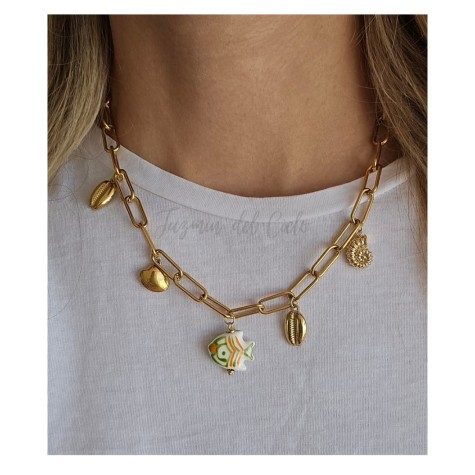Largor total: 79 cm. + 5 cm. de alargue en cadena de acero inoxidable.