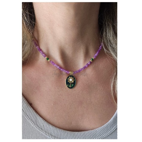 Largor total del collar: 40cm. + 5 cm. de alargue en cadena de acero inoxidable.